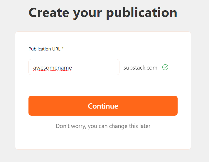 You will then have an address suggested to you based on your name, but change that. give yourself an awesome name. (If it’s taken, the system will tell you that.) As it says, you can change it later, so you don’t have to get it right the first time.