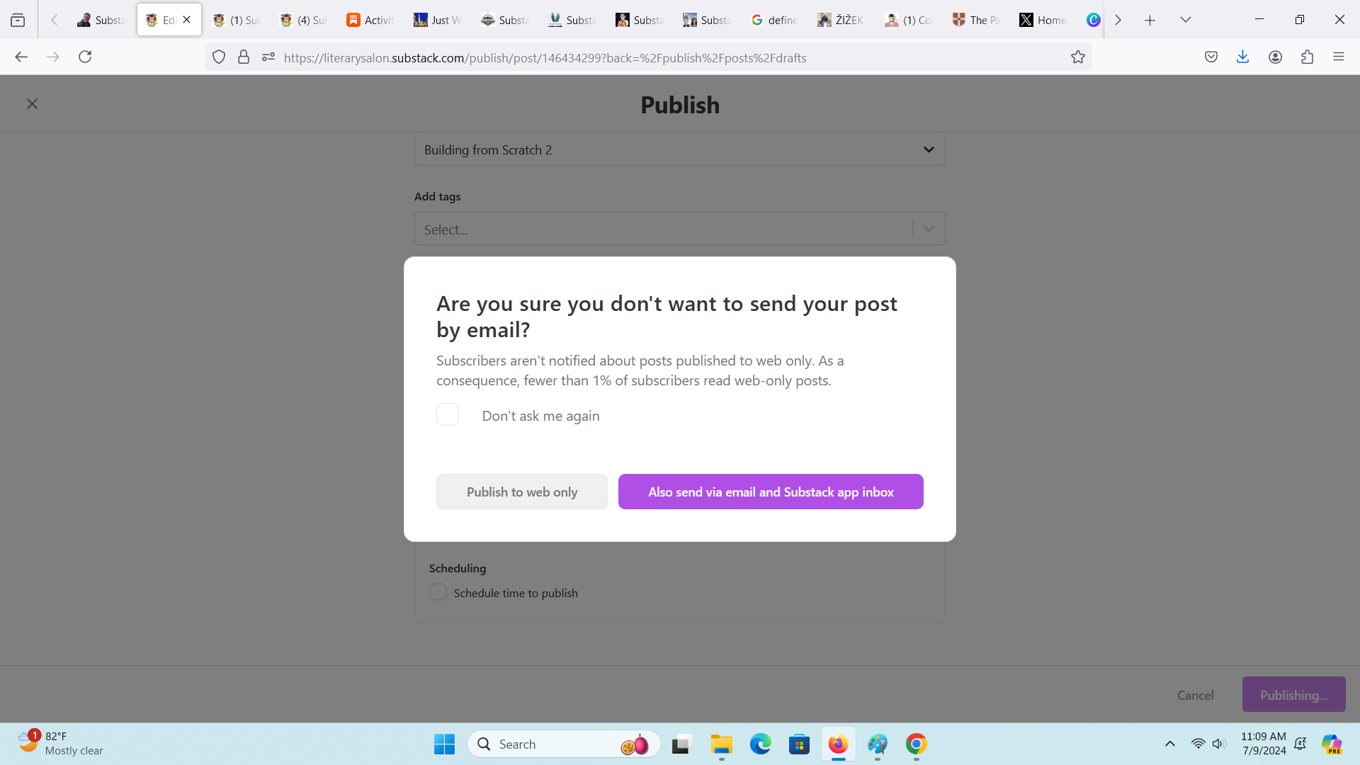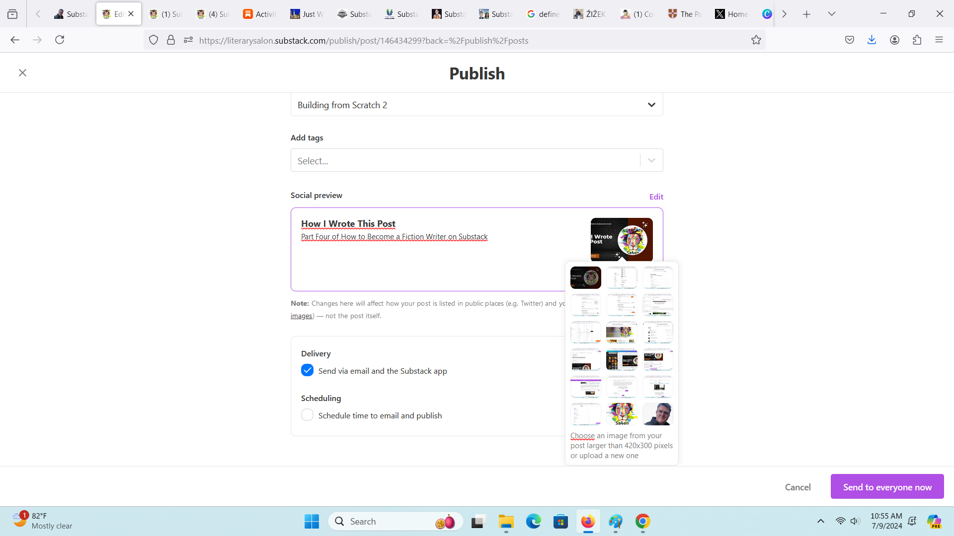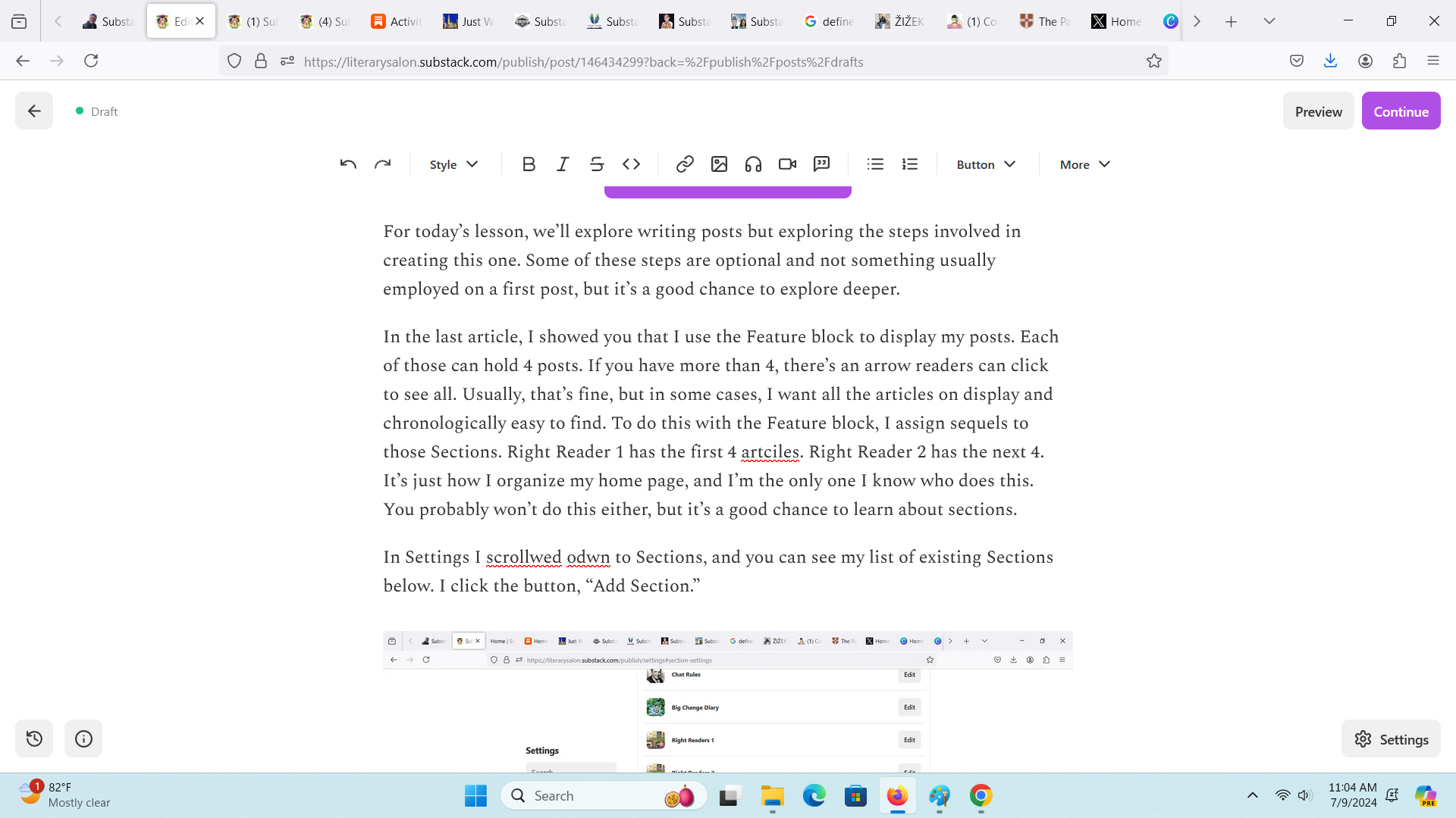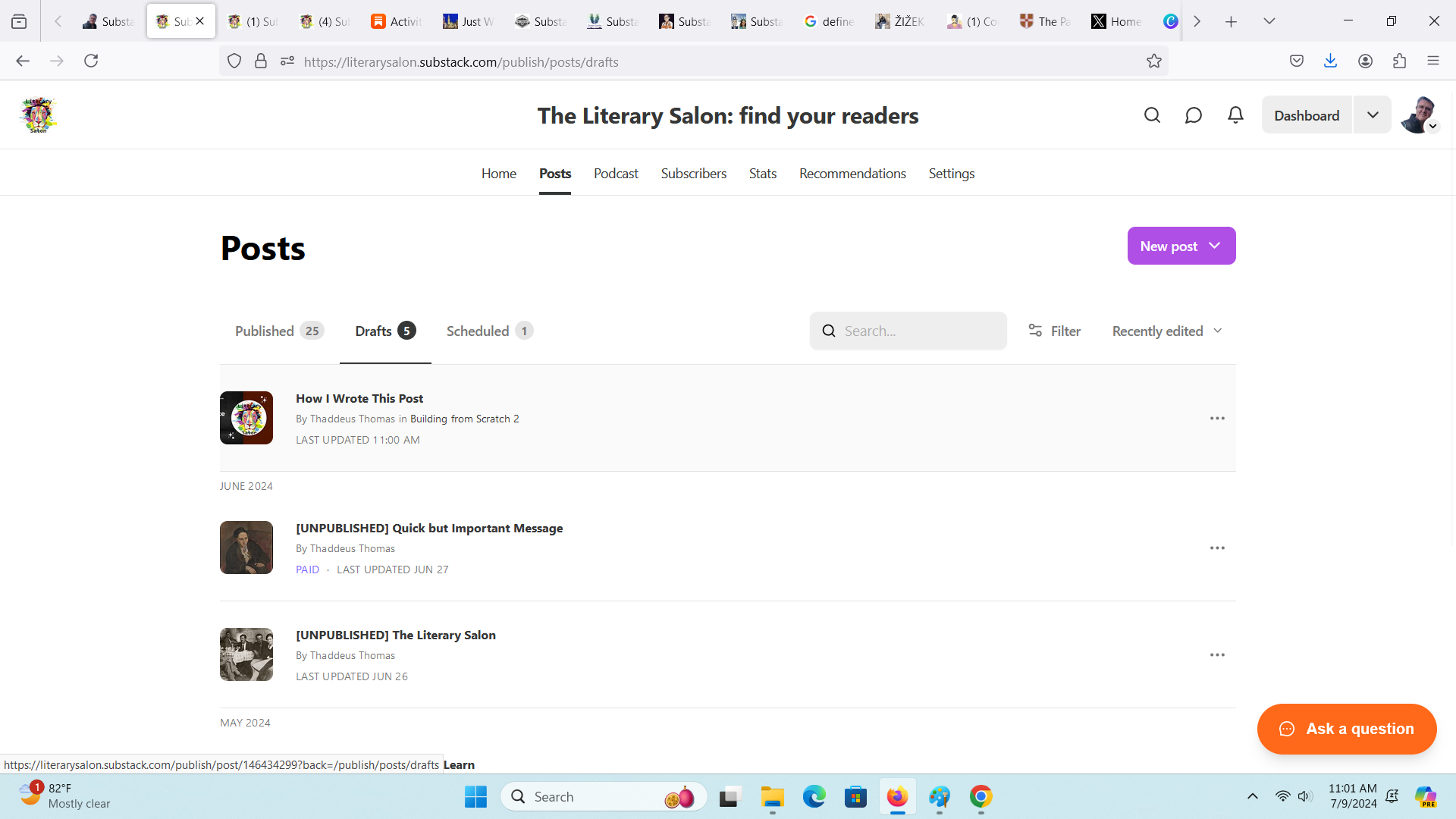 Substack comes with a spellchecker, but I don’t trust it to catch everything until I’ve left and come back again. Because I’m not scheduling this post, I’ll find it under drafts: