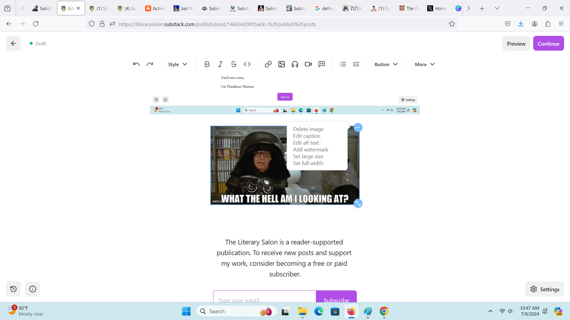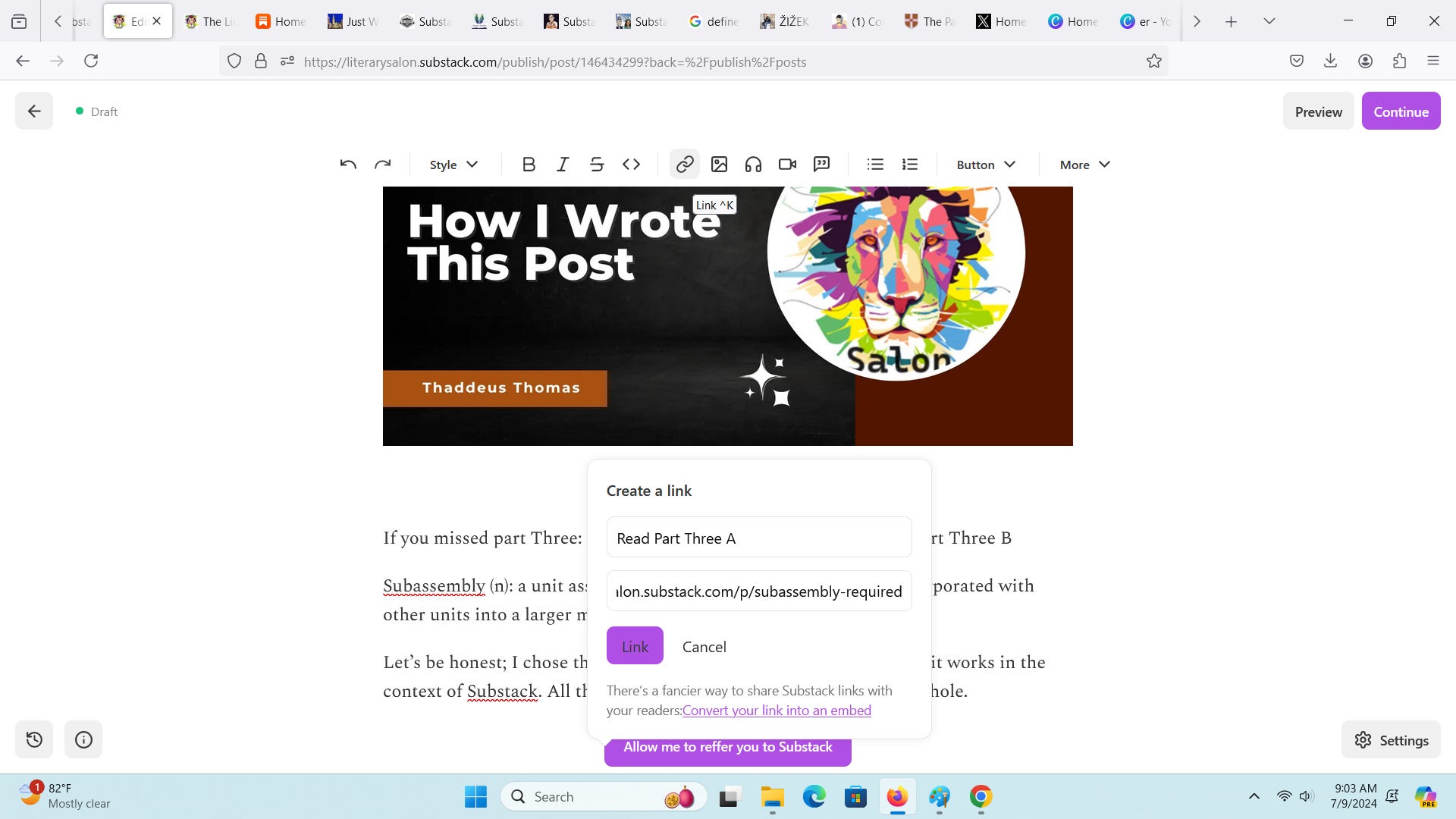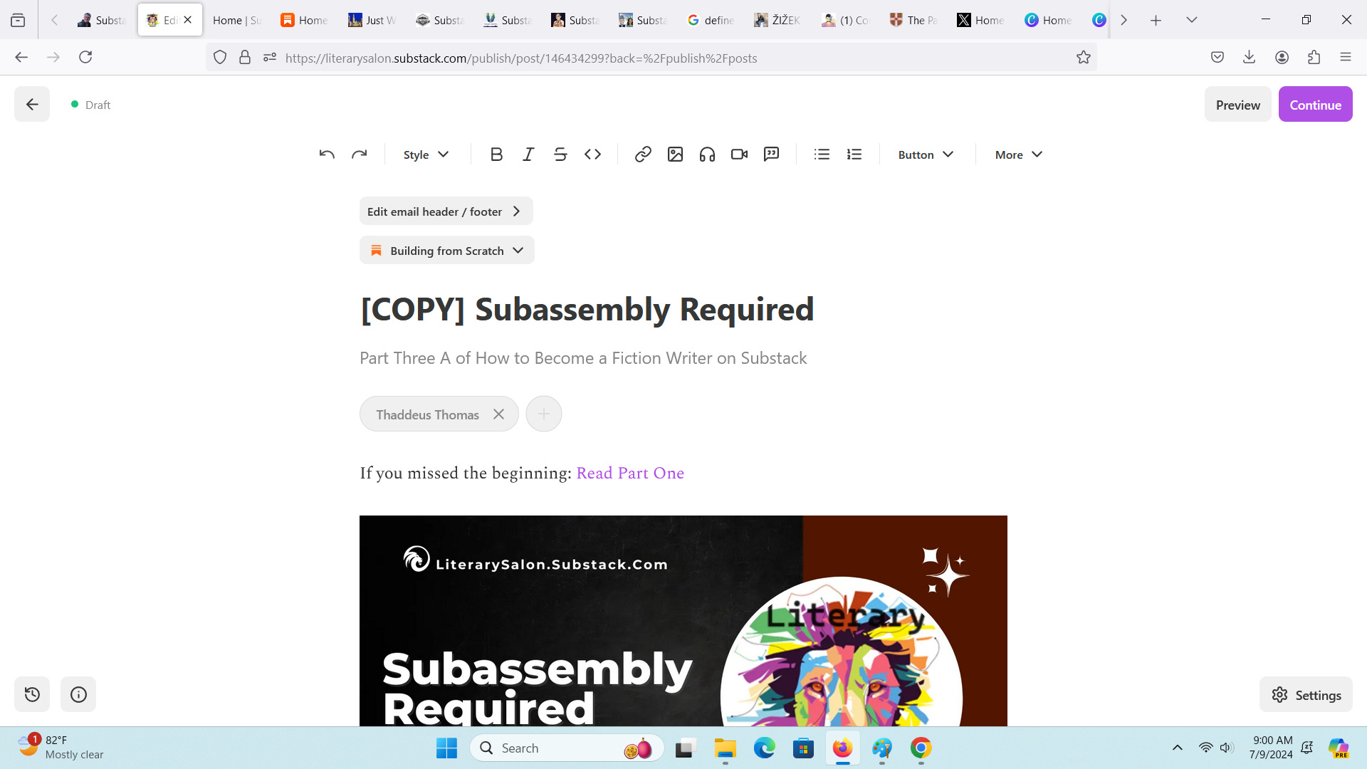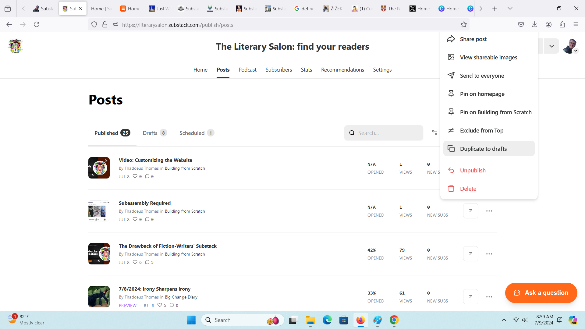 Substack comes with a spellchecker, but I don’t trust it to catch everything until I’ve left and come back again. Because I’m not scheduling this post, I’ll find it under drafts: