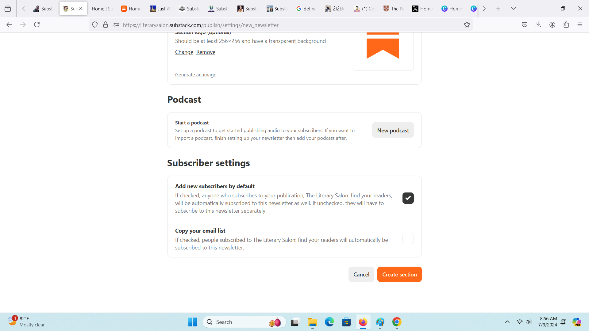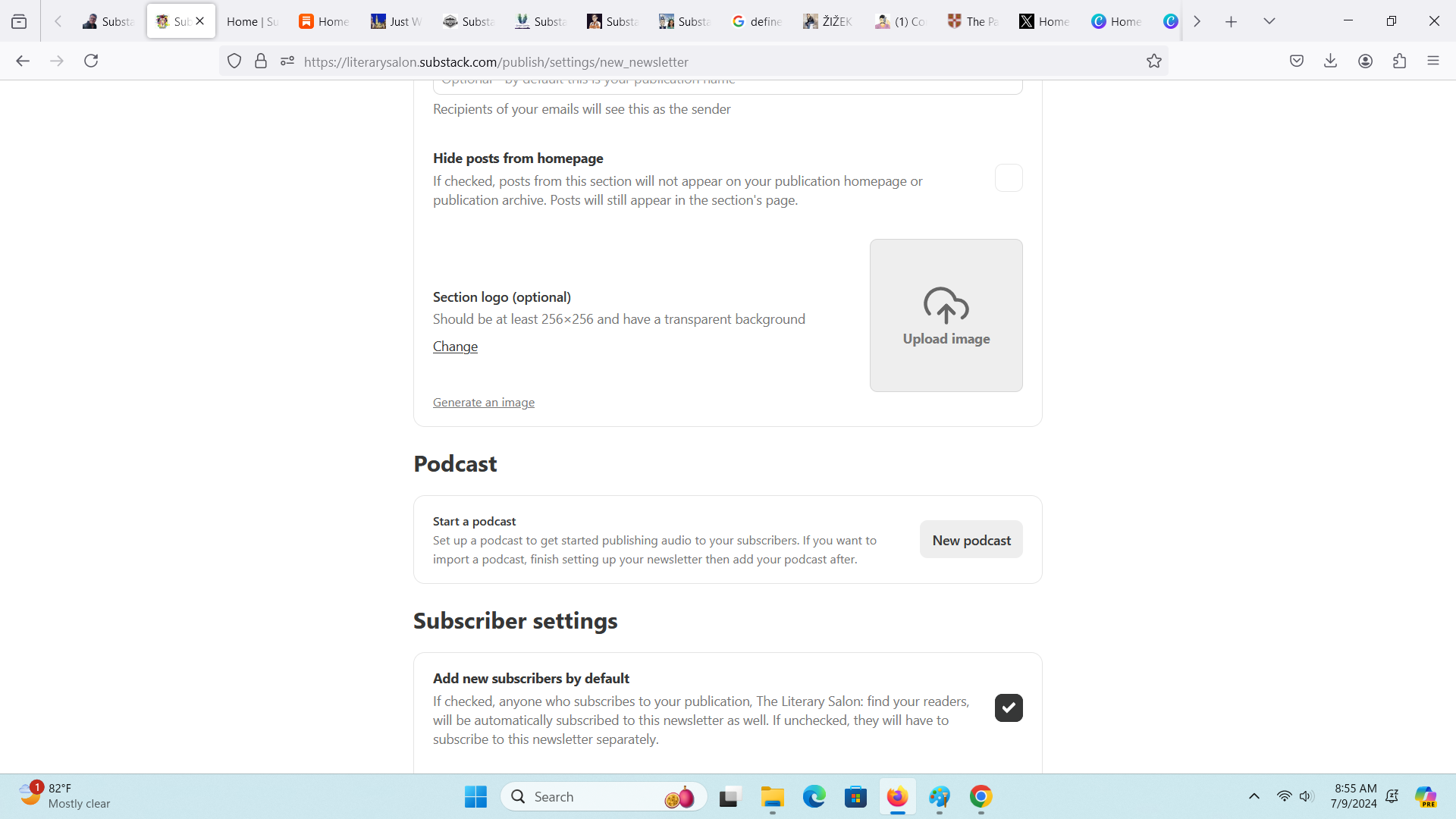 Moving on, next you can set a logo for the Section. You can assign a podcast to it, and then you determine the subscriber settings.